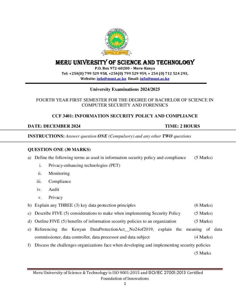 Below Is The Link Click To Download Information-Security-Policy-And-Compliance-Exam-Past-Paper-Mpya-News Above Is The Link Click To Download What topics are covered