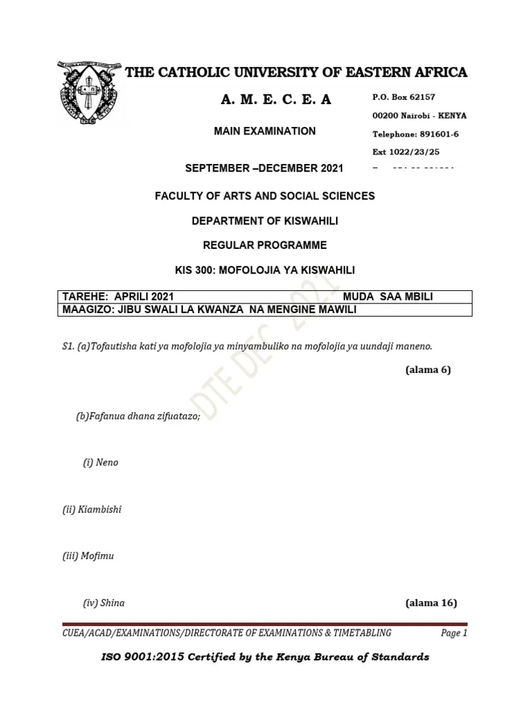 Download Kiswahili Morphology And Syntax Exam Past Paper What topics are covered in the Kiswahili Morphology and Syntax exam? The
