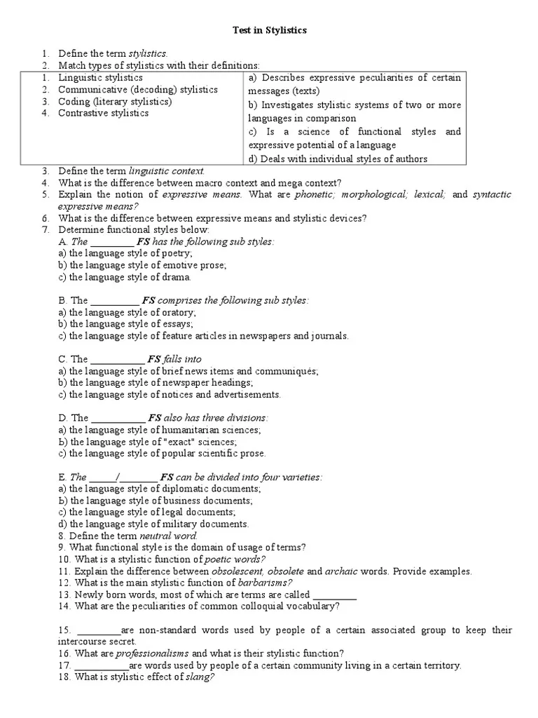 Download Theory Of Literature And Stylistics Exam Past Paper